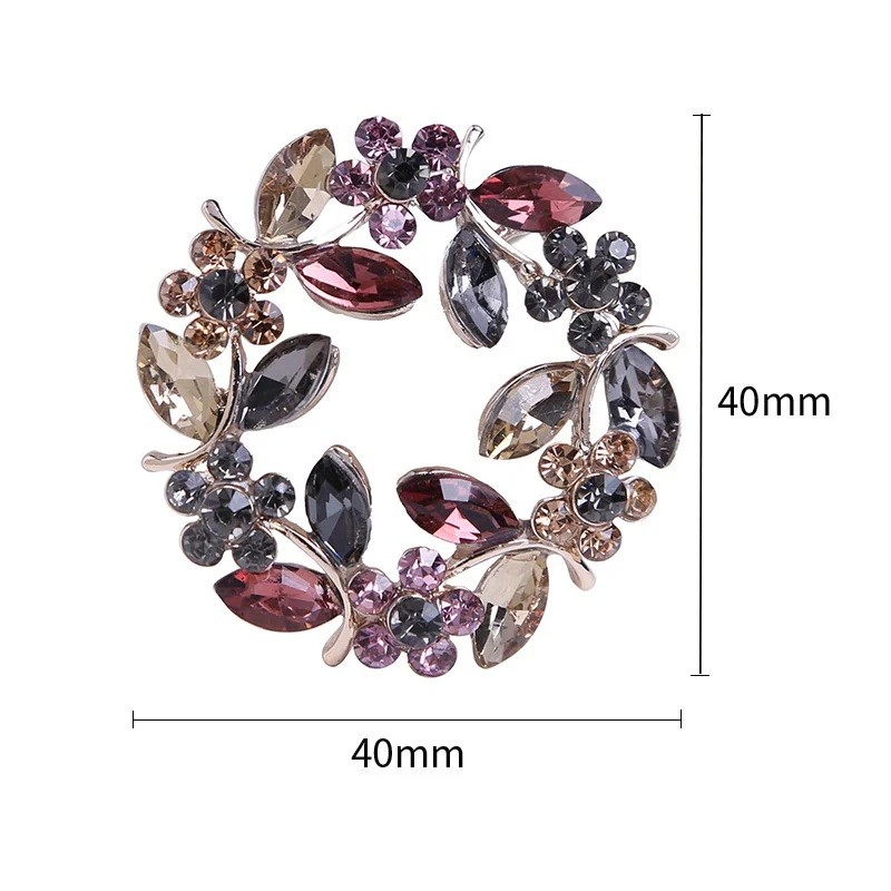 Úvodná strana Úvodná strana Šperky a hodinky Brošne Luxusná kamienková brošňa 4 x 4 mm v tvare prstena Farebný listnatý veniec s kvetmi Zinková zliatina Elegantný šperk