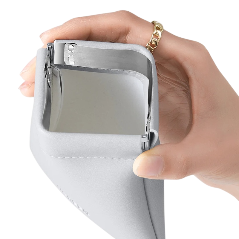 11 x 11 cm, je puzdro dostatočne kompaktné a pohodlné na bežné nosenie. Puzdro sa otvára a zatvára vďaka