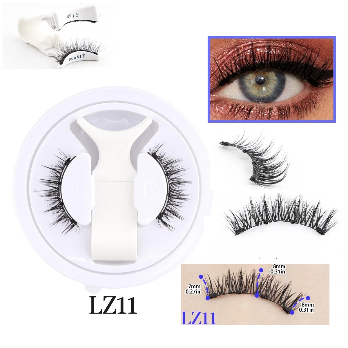 Magnetické umelé riasy LZ11 predstavujú moderné riešenie pre rýchle a pohodlné zvýraznenie očí bez nutnosti použitia lepidla. Vďaka inteligentnému magnetickému systému je ich aplikácia veľmi jednoduchá a zvládne ju aj úplný začiatočník. Riasy vytvárajú prirodzený objem a jemné predĺženie, ktoré je vhodné ako pre každodenné líčenie, tak aj na slávnostné príležitosti. Praktické balenie navyše obsahuje špeciálnu magnetickú pinzetu, ktorá uľahčuje presné nasadenie.