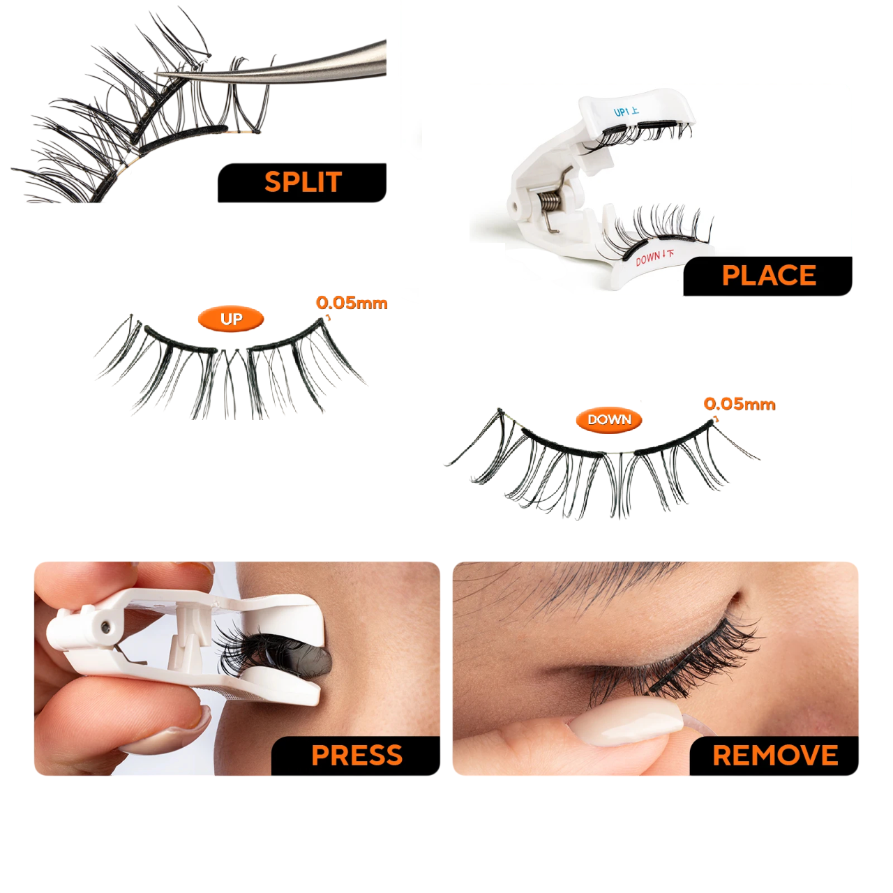 Veľkou výhodou je jednoduchá aplikácia bez lepidla, ktorá šetrí čas aj citlivé okolie očí. Riasy je možné používať opakovane, takže sú ekonomickou aj ekologickejšou alternatívou klasických nalepovacích variant. Vďaka ľahkej konštrukcii držia pohodlne po celý deň a nepôsobia ťažko na viečku. Prirodzený vzhľad je ideálny pre bežné nosenie aj večerný make-up.