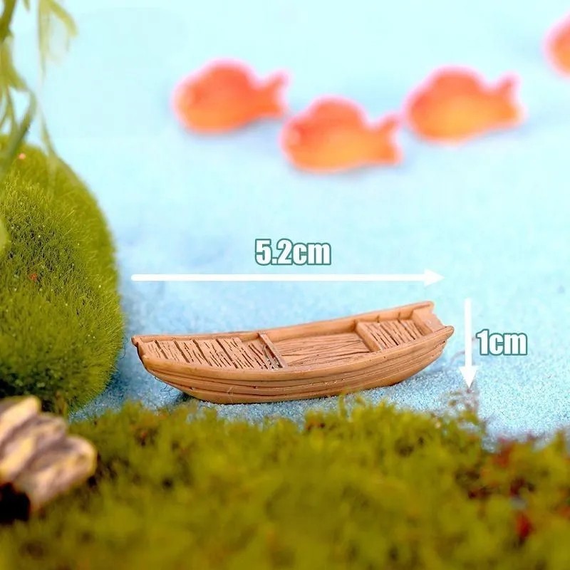 Miniatúrna loďka je dekoratívny prvok určený na tvorbu diorám, mini záhrad a modelových krajín. Tento drobný model napodobňuje vzhľad malej drevenej lode a pomáha vytvoriť prirodzenú atmosféru vodnej scenérie. Vďaka svojmu detailnému spracovaniu môže byť zaujímavým doplnkom modelového jazierka, potoka alebo inej vodnej časti miniatúrnej krajiny.