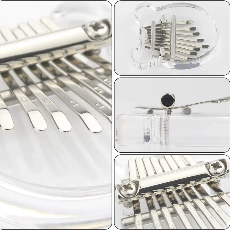 Mini kalimba Miwayer v tvare mačky je jedinečný hudobný nástroj, ktorý spája tradičný zvuk kalimby s moderným a hravým dizajnom. Vyrobená z priehľadného akrylového materiálu pripomínajúceho kryštál, pôsobí elegantne a zároveň roztomile. Vďaka svojim kompaktným rozmerom 7 × 5 cm je ľahká, ľahko prenosná a zmestí sa do vrecka, tašky alebo batohu, takže ju môžete mať kedykoľvek pri sebe.
