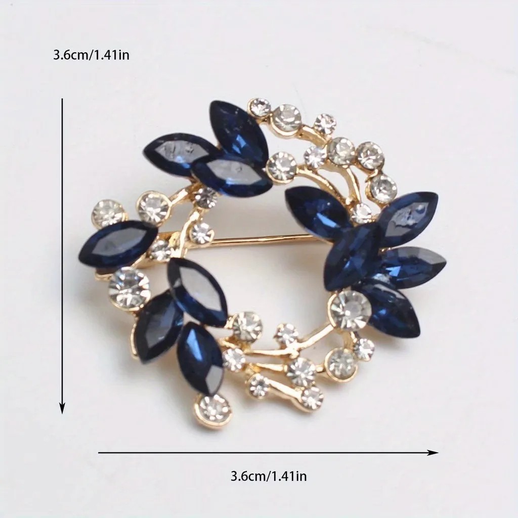 Módna brošňa 3,6 x 3,6 cm Prstencový tvar Motýľ a listy Decentný moderný doplnok s kamienkami Zinková zliatina