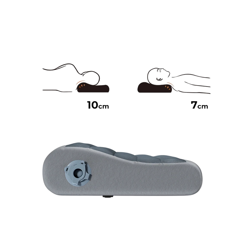 Tento nafukovací ergonomický polštár o rozmeroch 30 x 42 cm poskytuje dokonalé pohodlie pri spánku, odpočinku alebo cestovaní. Vďaka dvojitej výške – 7 cm na jednej strane a 10 cm na druhej – si môžete ľahko zvoliť ideálnu polohu podľa svojich potrieb. Vyrobený z ľahkej, odolnej a ľahko udržiavateľnej tkaniny, je vhodný na kempovanie, cestovanie, do auta aj na domáce použitie. Polštár sa po vyfúknutí zloží do kompaktného balenia o veľkosti 12 × 8 cm, takže nezaberie takmer žiadne miesto a ľahko sa zmestí do batohu alebo vrecka. Jeho ergonomický tvar podporuje správnu polohu hlavy a krku, čím zaisťuje zdravý a pokojný spánok.