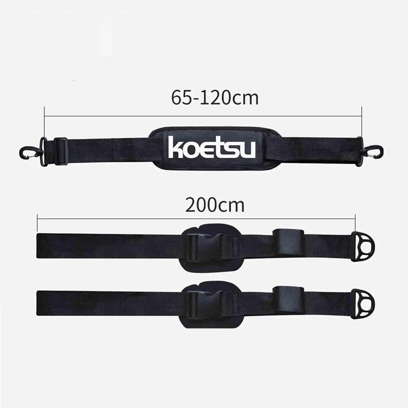 Tieto nastaviteľné ramenné popruhy sú ideálnym riešením pre jednoduché a pohodlné prenášanie paddleboardu, SUP dosky, kajaku alebo surfovania. Vďaka nastaviteľnej dĺžke v rozmedzí 65–120×200 cm sa ľahko prispôsobia rôznym veľkostiam a typom športového vybavenia. Sú vyrobené z pevných a odolných materiálov, ktoré zabezpečujú dlhú životnosť aj pri častom používaní. Kovové príslušenstvo dodáva popruhom vysokú pevnosť a spoľahlivosť pri zaťažení, zatiaľ čo ergonomický dizajn umožňuje pohodlné nosenie na ramene aj pri dlhšej ceste. Súčasťou je aj praktická taška so sťahovacou šnúrkou, ktorá poslúži na uloženie doplnkov alebo samotných popruhov.