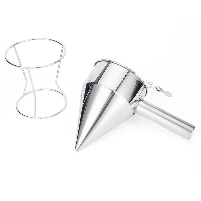 Nerezový dávkovací trychtýř 1200 ml so stojanom Dávkovač cesta na lievance muffiny dezerty kuchynská cukrárska pomôcka