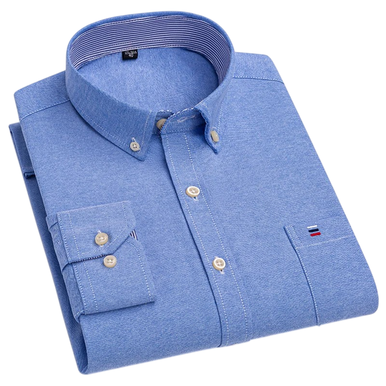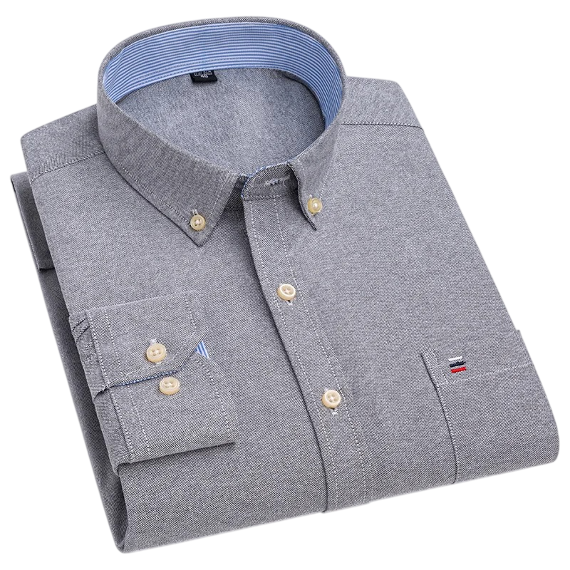 Klasická pánska košela z bavlny s límečkom, kapsičkou a zapínaním na gombíky, vhodná do práce, mesta i na voľný čas. Celý popis