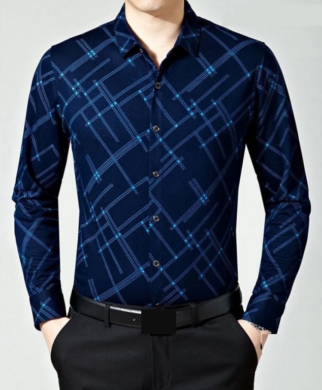 Pánska originálna košeľa s potlačou čiar po celom obvode košele.