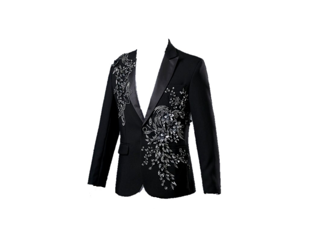 Pánske sako s 3D striebornými kvetmi J2670