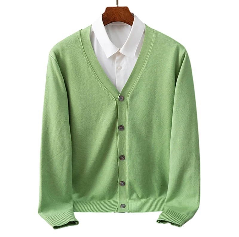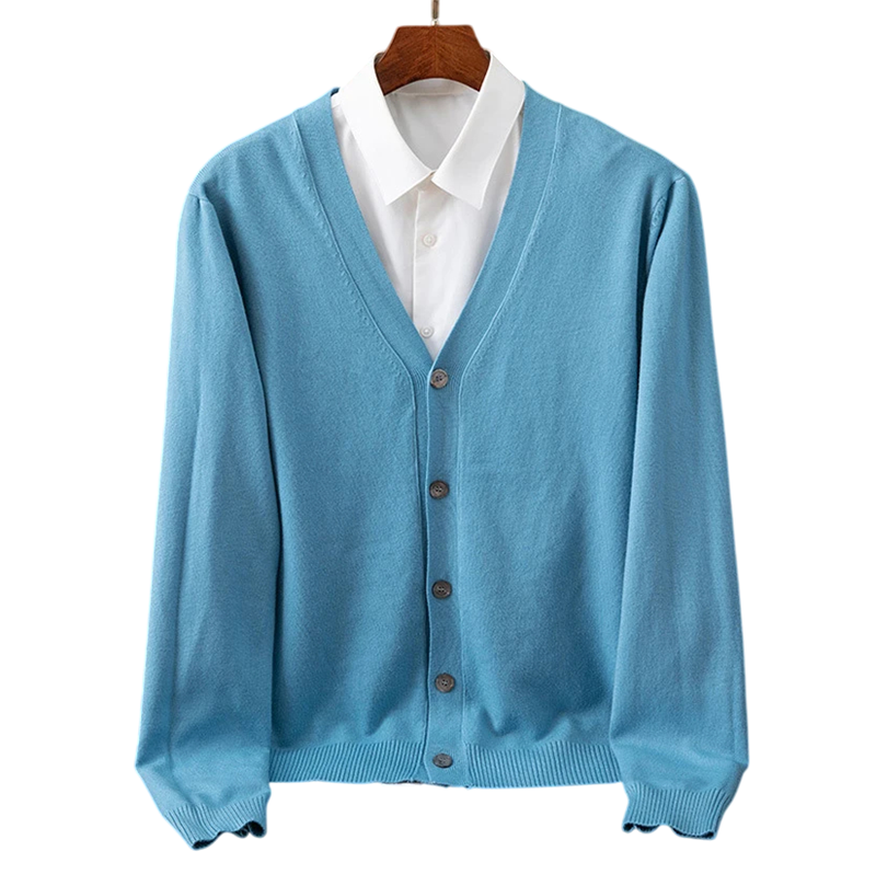 Tento pánsky kardigan je ideálnou voľbou pre mužov, ktorí chcú spojiť elegantný vzhľad, pohodlie a praktickosť. Vďaka kvalitnému zloženiu z nylonu a polyesteru je odolný, príjemný na dotyk a zároveň si zachováva svoj tvar aj pri častom nosení. Výstrih do V a rozopínanie na gombíky mu dodávajú klasický vzhľad, ktorý sa hodí ako pre formálne príležitosti, tak aj pre voľnočasové aktivity.