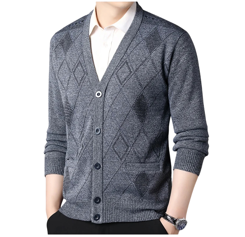 Elegantný pánsky svetrový kardigan je ideálnou voľbou pre každodenné nosenie aj formálnejšie príležitosti. Vďaka výstrihu do V pôsobí nadčasovo a ľahko sa kombinuje s košeľou alebo tričkom. Zapínanie na praktické gombíky dodáva klasický vzhľad a umožňuje pohodlné vrstvenie. Materiál z kvalitného polyesteru poskytuje mäkkosť, odolnosť a dlhú životnosť. Tento jednobarevný sveter s jemným vzorom ponúka štýl aj komfort v jednom.