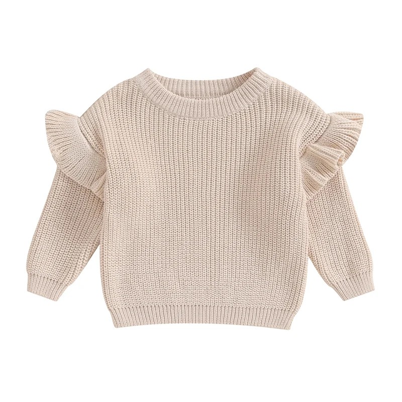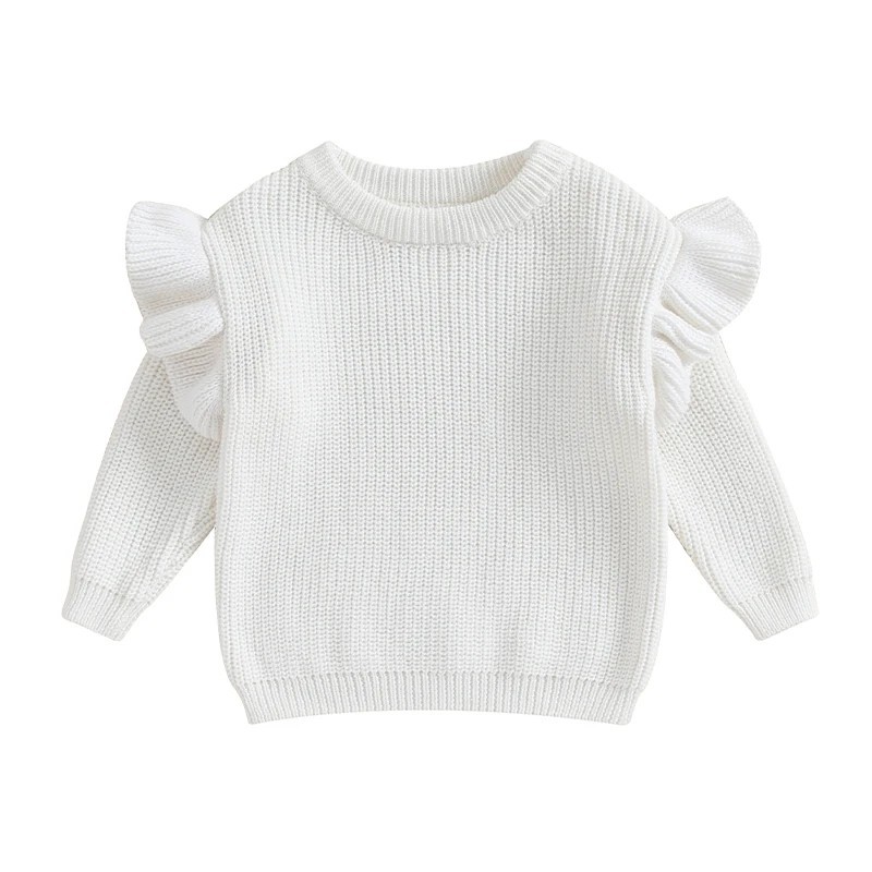 Mäkký pletený sveter s volánkami z bavlny a akrylu pre novorodencov. Pohodlný, teplý a štýlový top s kulatým výstrihom, ideálny pre dievčatá aj chlapcov. Celý popis
