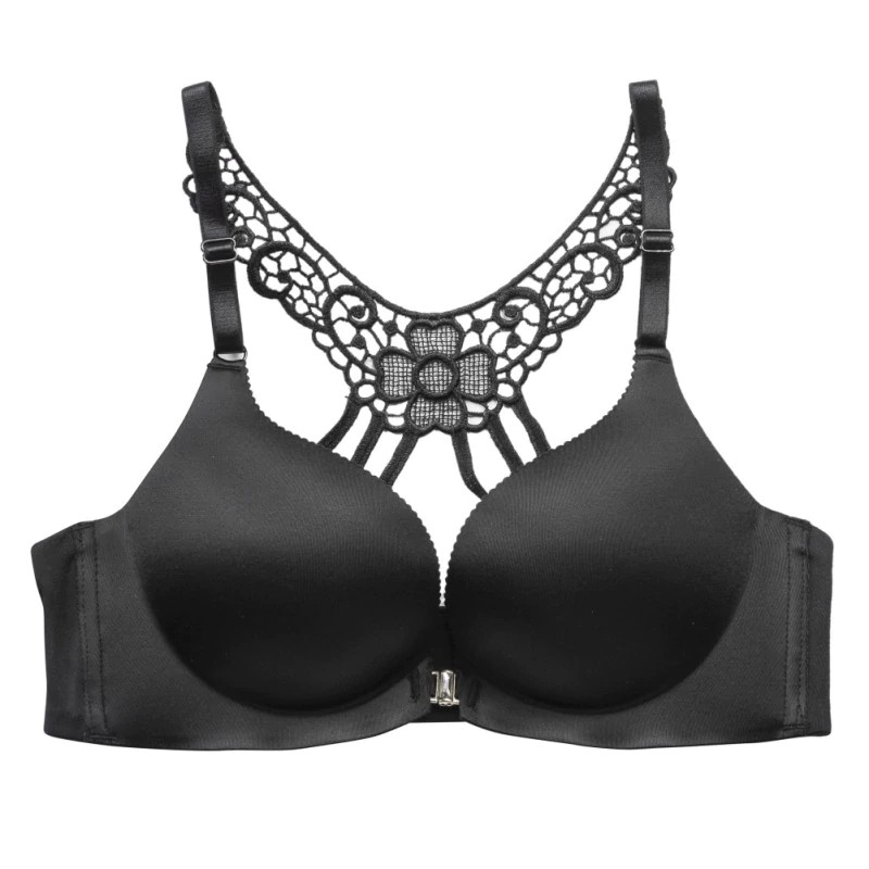 Podprsenka sa zapne vpredu a zadná strana je krajková so vzorom kvety.