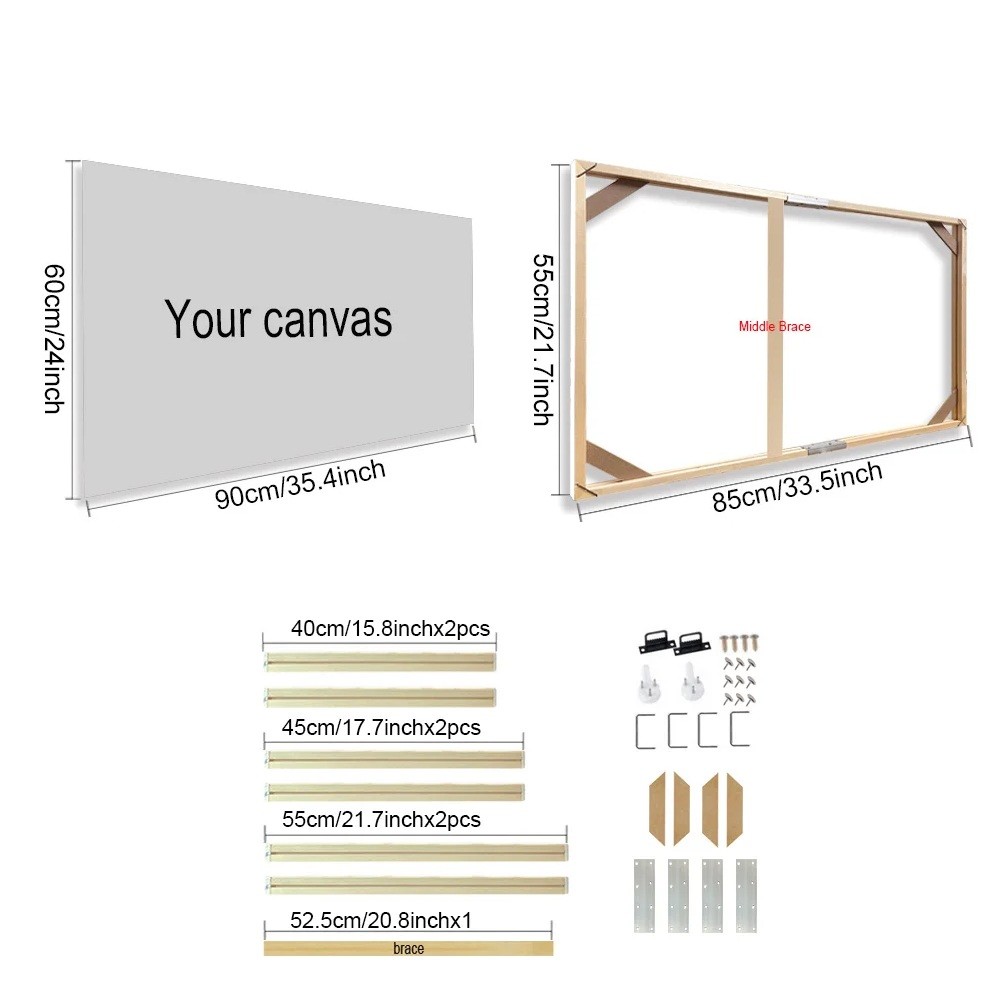 Prírodný drevený fotorámček 55 x 85 cm Rám pre plátno 60 x 90 cm So strednou výstužou 52,5 cm závesný rám na fotografie obrazy DIY