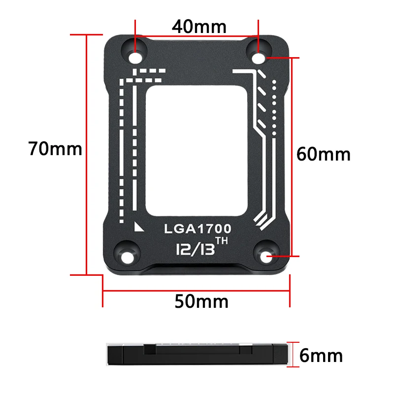 Protiohybový hliníkový rám 7 x 5 cm pre paticu LGA1700 Zosilnenie základnej dosky Ochrana CPU chladiča Stabilná montáž procesora