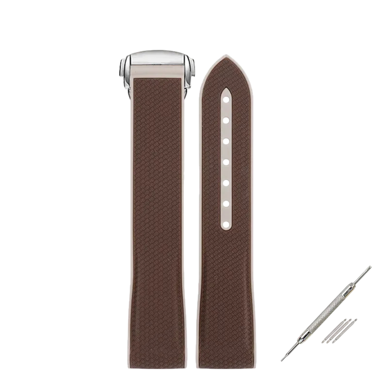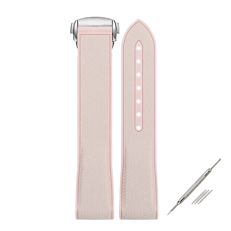 Tento silikónový kaučukový remienok o šírke 20 mm je ideálnou voľbou pre používateľov, ktorí hľadajú kombináciu odolnosti, elegantného športového vzhľadu a pohodlného nosenia. Vďaka mäkkému, pružnému materiálu sa perfektne prispôsobí zápästiu a poskytuje komfort aj pri dlhodobom používaní. Je kompatibilný s hodinkami Omega X Swatch MoonSwatch a tiež so Seamaster 300, vďaka čomu je vhodný pre širokú škálu prémiových modelov. Skladacia konštrukcia zabezpečuje pevné uchytenie a bezpečné zapínanie pri každodenných aktivitách. Súčasťou balenia je tiež príslušenstvo na opravu remienka, ktoré umožňuje jednoduchú výmenu alebo doplnenie dielov.