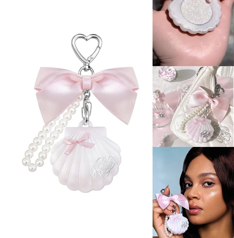 Rozjasňovač prívesok Kozmetická krabička mušľa Mini rozjasňovač na tvár Prenosné make-up puzdro v tvare mušle dekorácia