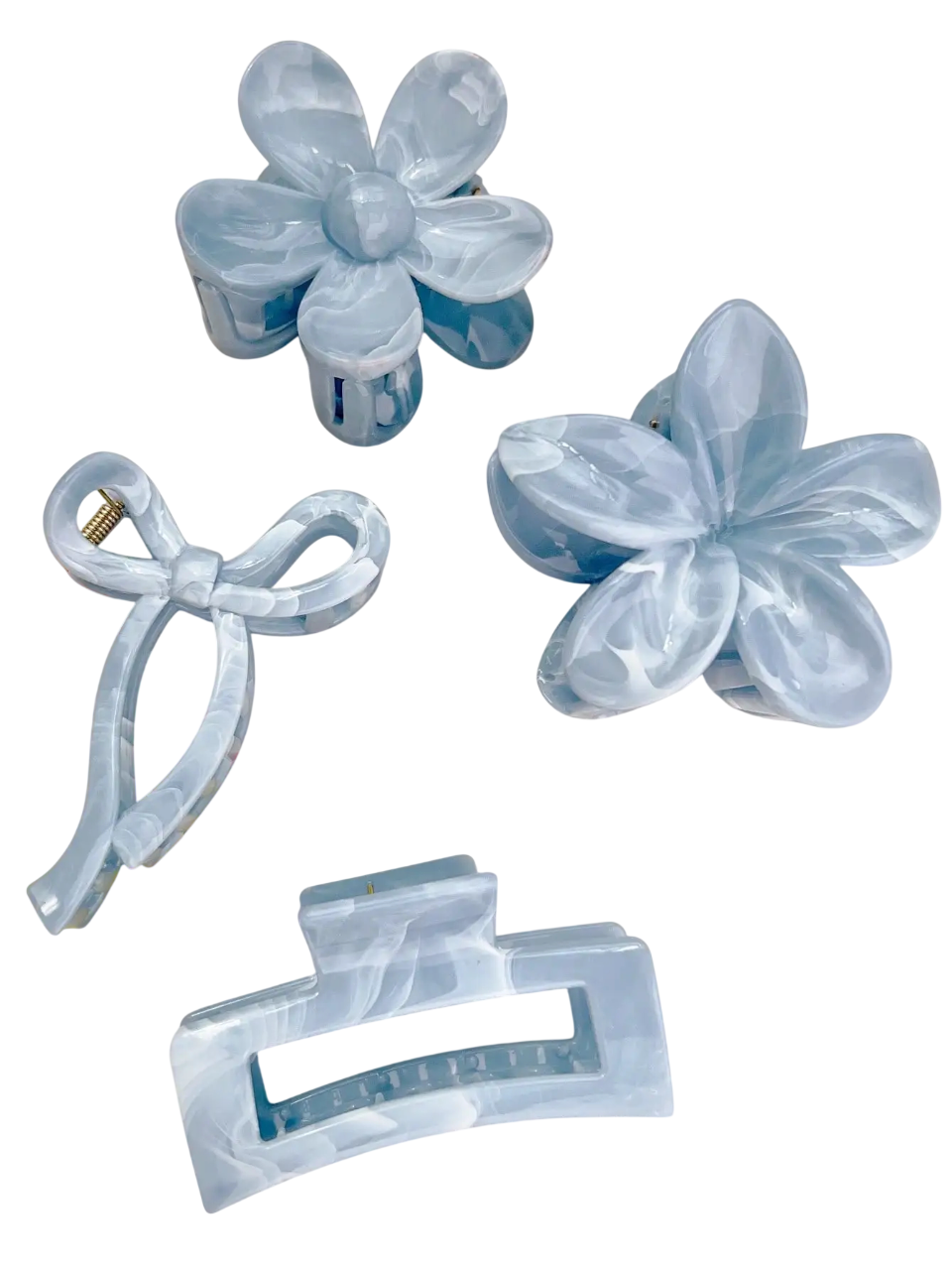 • 4 odlišné tvary – kvetinové motívy, klasická sponka a mašľa