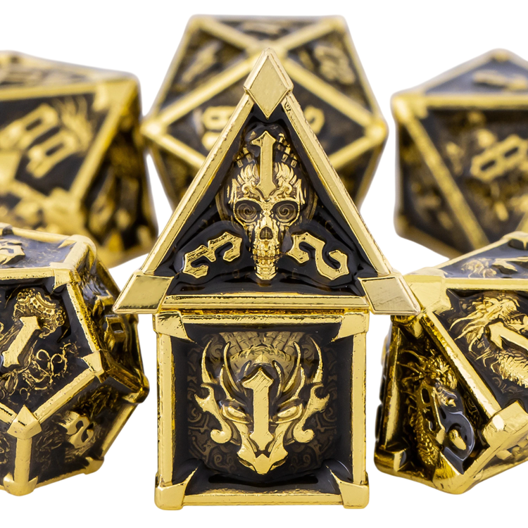 Tento tematický set hracích kostiek je navrhnutý pre stolné a roleplay hry s dôrazom na výrazný vizuálny štýl. Obsahuje 7 ks hracích kostiek, ktoré tvoria štandardnú kombináciu používanú v RPG systémoch a hrách typu Dračí doupě. Motív lebky v temnom fantasy prevedení dodáva kostkám osobitý charakter a podporuje atmosféru herného sveta.