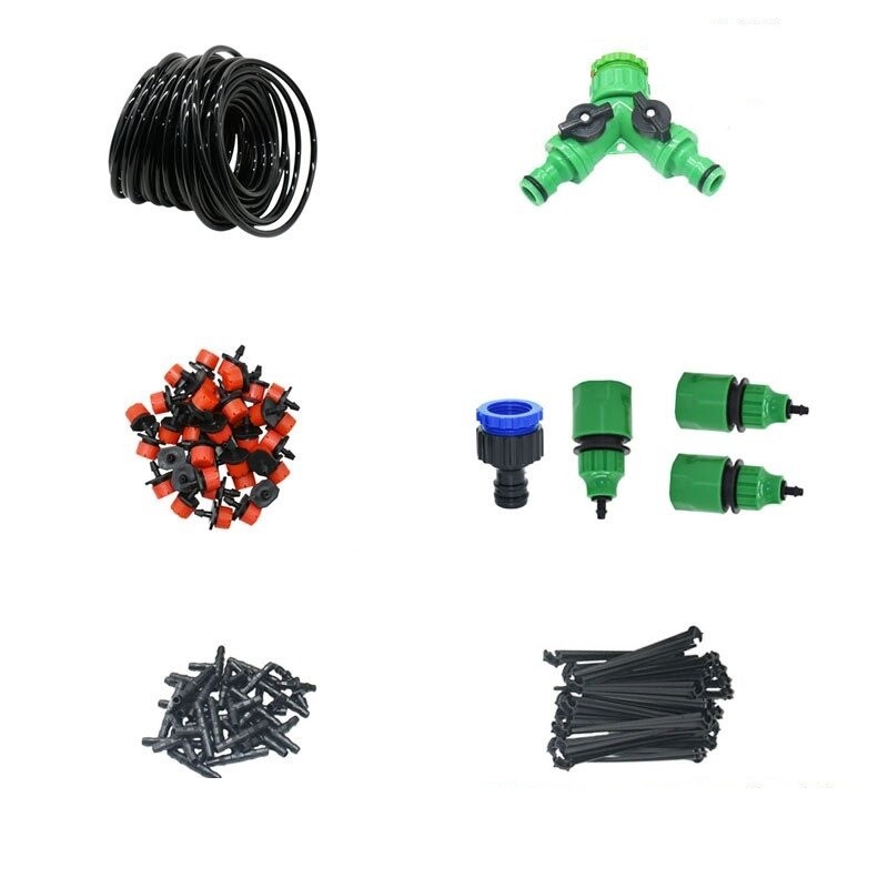 • dĺžka 50 m: 1x hadica, 60x koncový kvapkač, 60x spojka, 60x držiak hadice, 4x konektor, 2x dvojcestný ventil 1/2 "