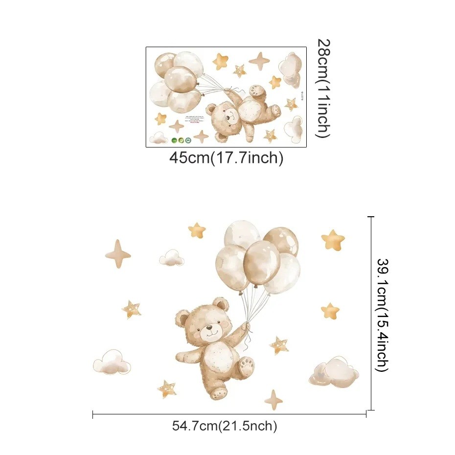 • Motív roztomilého medvedíka s balónikmi, ktorý dodáva izbe jemnú a hravú energiu