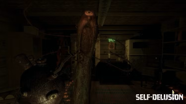 Self-Delusion je survival horor z pohľadu prvej osoby. Hra založená na originálnom prostredí ponurých rozprávok a mýtov. Budete čeliť zlým stvoreniam, ako sú: Kolobok , Leshy , Boggart , Lapot a ďalšie mystické postavy.