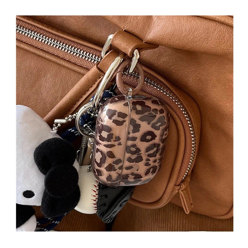Šikovné priehľadné silikónové puzdro s leopardím vzorom pre AirPods 4, mäkké ochranné puzdro s kľúčenkou