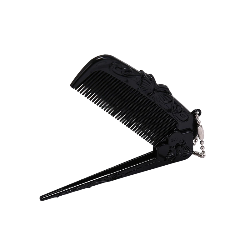 Praktický a štýlový pomocník pre každodennú úpravu vlasov, ktorý spája funkčnosť s elegantným dizajnom. Tento skládací hrebienok je navrhnutý tak, aby bol vždy po ruke – doma, v práci aj na cestách. Vďaka kompaktným rozmerom sa ľahko zmestí do kabelky, vrecka alebo kozmetickej taštičky. Elegantné čierne prevedenie s motívom motýľov pôsobí moderne a zároveň jemne dekoratívne. Hrebienok je vhodný na rýchle rozčesanie, úpravu účesu aj presné oddelenie prameňov vlasov.