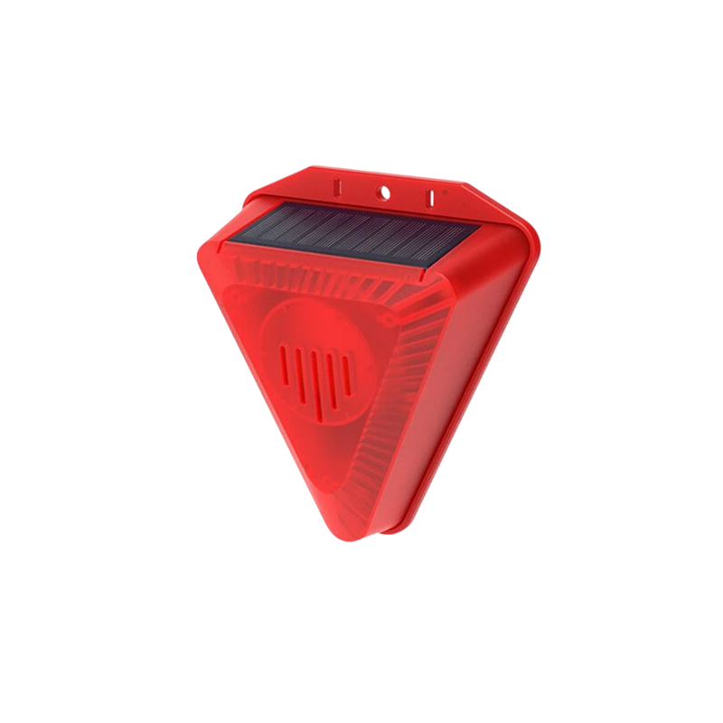 Solárny odpudzovač zvierat so zvukom štekania psa 129 dB a blikajúcimi LED diódami IP65 plast červený pre ochranu záhrady a pozemku
