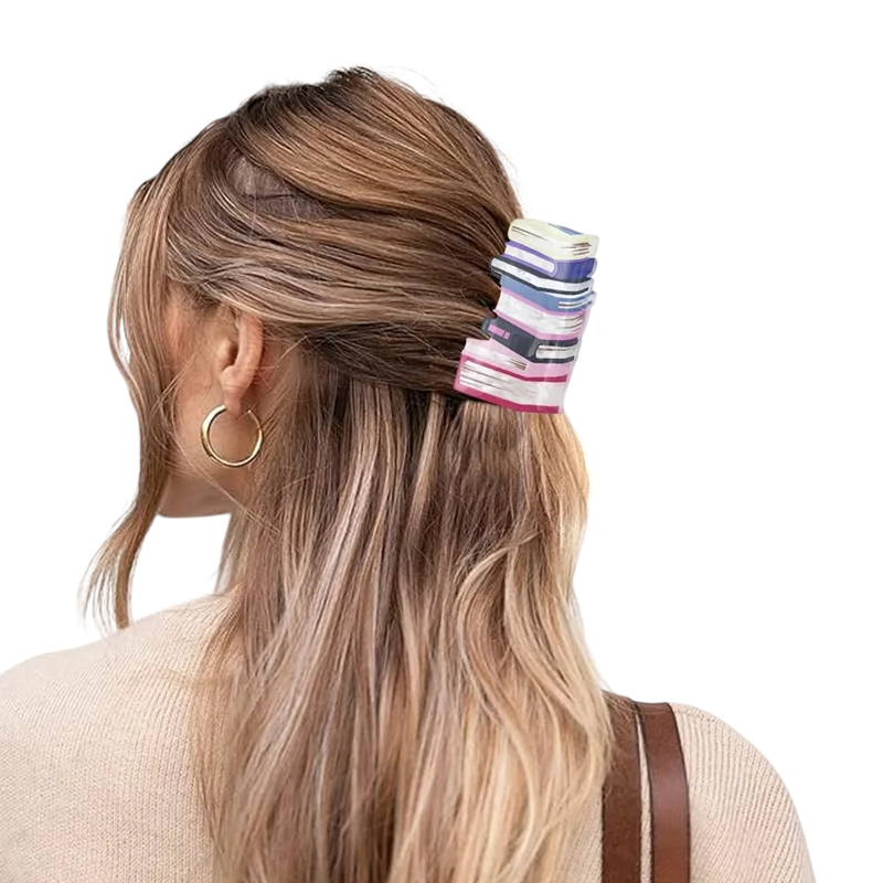 Originálny vlasový doplnok inšpirovaný motívom naskladaných kníh predstavuje ideálnu kombináciu praktickosti a výrazného dizajnu. Spona zaujme na prvý pohľad svojím netradičným vzhľadom, ktorý dodá účesu osobitý charakter a hravý štýl. Vďaka detailnému spracovaniu pôsobí doplnok moderne a zároveň elegantne, takže sa hodí ako pre bežné nosenie, tak aj ako zaujímavý módny prvok do práce, školy alebo na voľný čas.
