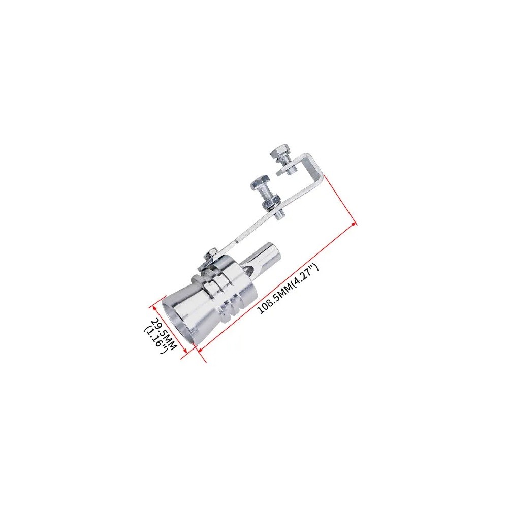 Strieborná turbo píšťalka do výfuku L 108,5 × 29,5 mm Univerzálny simulátor zvuku turba hliníková pískacia trubka tuning doplnok pre všetky automobily