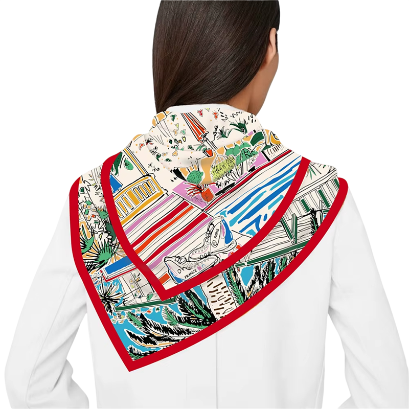 Ľahký štvorcový šál inšpirovaný Francúzskou Riviérou je multifunkčný módny doplnok na hlavu, krk i telo. Celý popis