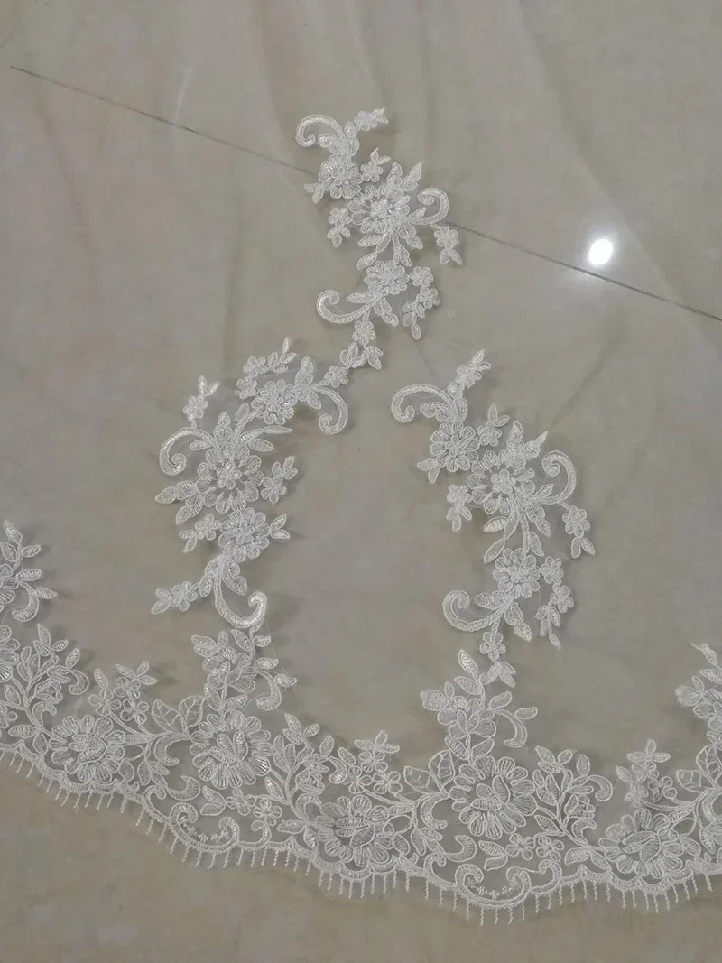 Svadobný závoj 3 m Katedrálne Jednovrstvový Tylový Krajkové aplikácie Lemovaný krajkou Biely Ivory biela Luxusný dlhý závoj