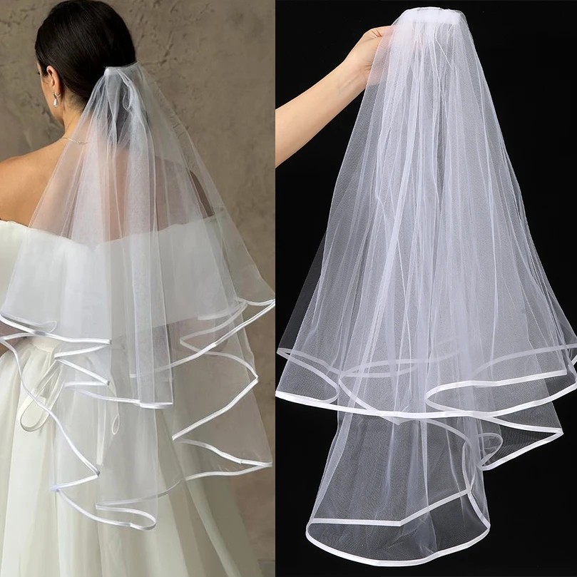 Svadobný závoj Biele Dvouvrstvý Tylový S lemovaním Sponka do vlasov Elegantný závoj na svadbu rozlúčku doplnok