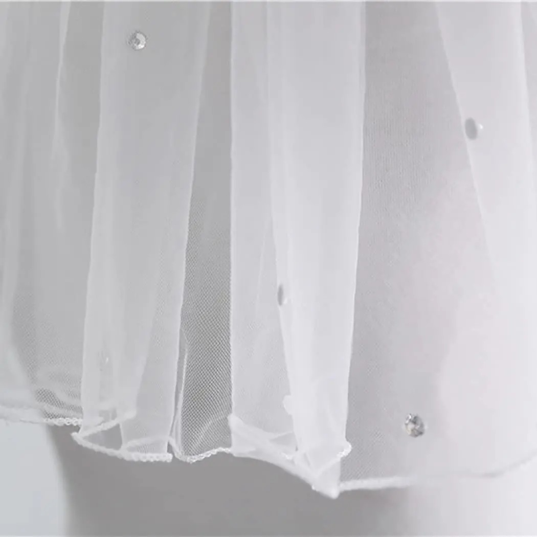 Svadobný závoj Krátky Jednovrstvý Tylový S hrebienkom Zdobený kryštálikmi Jemný mesh Biely Elegantný doplnok pre nevestu