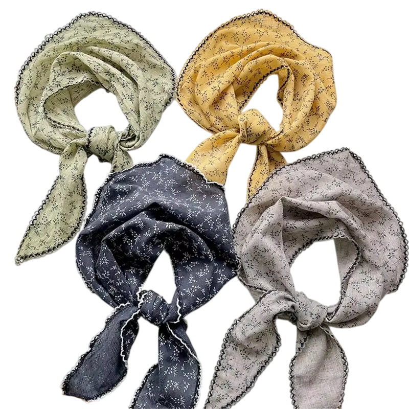 Ľahkosť, ženskosť a jemný kvetinový dizajn – to všetko spája tento univerzálny módny doplnok. Vďaka rozmeru 90 x 29 cm je šál dostatočne dlhý na pohodlné viazanie, ale zároveň praktický na každodenné nosenie. Trojuholníkový tvar umožňuje jednoduché štýlovanie a dodá outfitu svieži nádych počas celého roka. Šál sa dá nosiť ako elegantný šál na krk, romantickú čelenku alebo ako praktický vlasový zábal. Skvele drží na hlave a hodí sa ako k voľným vlasom, tak k drdolu či culíku. Vďaka ľahkému materiálu je príjemný na dotyk a vhodný aj pre teplejšie počasie.