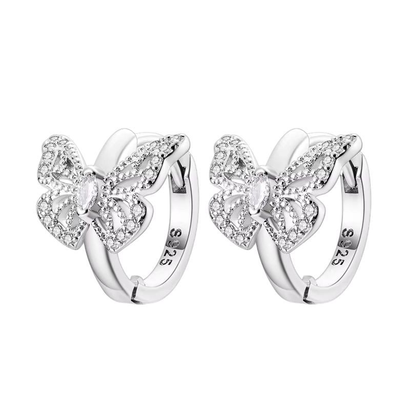 Štýlové motýlie náušnice zo sterlingového striebra 925 s trblietavými detailmi, ktoré zaujmú svojou eleganciou a jemným dizajnom. Celý popis
