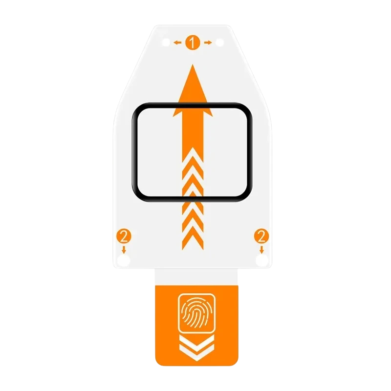 Súčasťou balenia je praktický inštalačný nástroj, ktorý pomáha správne zarovnať ochranné sklo pri aplikácii. Inštalácia tak prebieha prehľadne a umožňuje presné umiestnenie ochranného povlaku na displej hodiniek. Inštalačný rámček drží sklo v správnej polohe počas nalepenia.