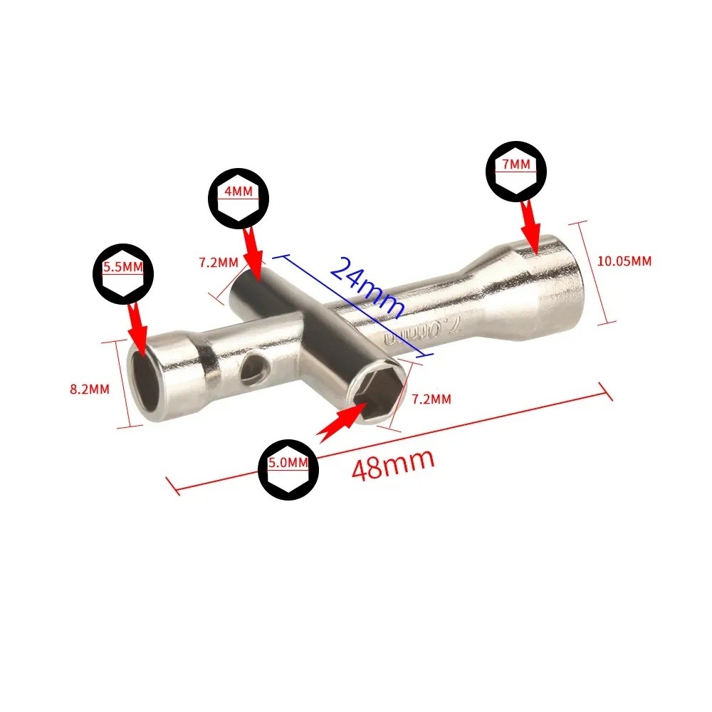 Tento univerzálny krížový kľúč 4 v 1 predstavuje praktické a spoľahlivé príslušenstvo pre prácu so skrutkami, tryskami a drobnými súčiastkami 3D tlačiarní. Je navrhnutý tak, aby uľahčil manipuláciu s bežnými rozmermi M2, M2.5, M3 a M4, čo ho robí ideálnym nástrojom pre údržbu, výmenu trysiek alebo jemné nastavenie tlačovej hlavy. Vďaka originálnej konštrukcii funguje ako viacúčelový kľúč, ktorý nahrádza niekoľko samostatných nástrojov, a tým šetrí miesto v dielenskej sade. Kľúč je vyrobený z kvalitného kovu, ktorý poskytuje pevnosť, stabilitu a dlhú životnosť aj pri častom používaní. Praktické je tiež využitie u trysiek E3D štandardných šesťhranných typov, ktoré sú kompatibilné s týmto nástrojom. Vďaka miniatúrnemu prevedeniu ho možno pohodlne uložiť do vrecka alebo zásuvky s príslušenstvom.