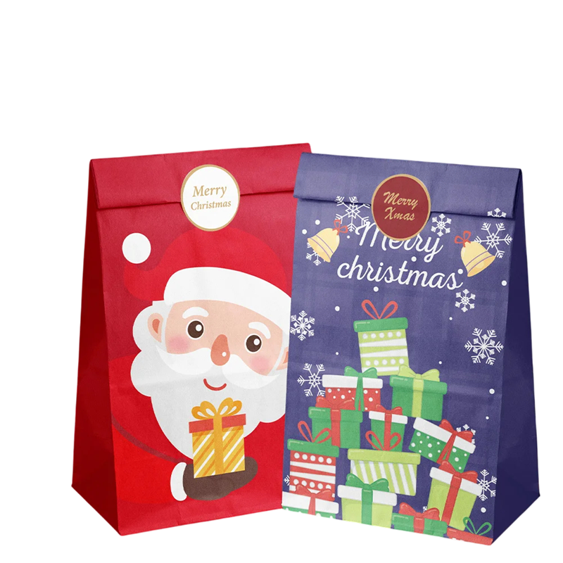 - Obsah balenia: 24 ks vianočných sáčkov (6 motívov × 4 ks) + samolepky