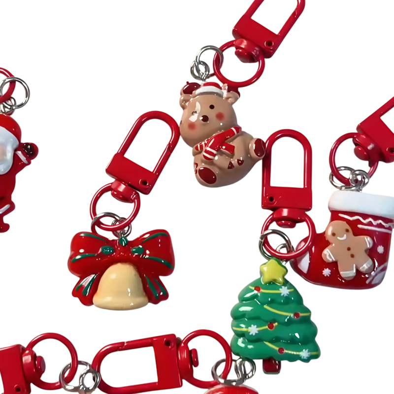 Sada roztomilých vianočných kľúčeniek s motívmi Santa, snehuliaka a perníčka. Ideálny drobný darček, dekorácia aj štýlový prívesok na kľúče. Celý popis