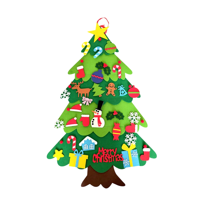 Vianočný stromček z plsti 100 x 70 cm s 32 ozdobami na suchý zips Interaktívna dekorácia pre deti Domáci zavesený strom na stenu