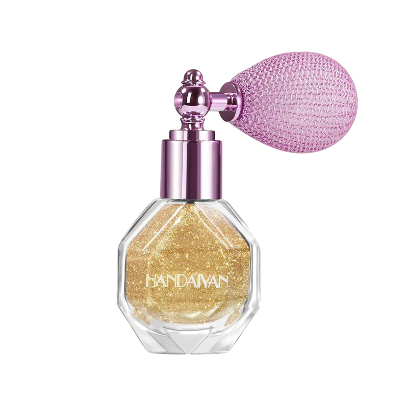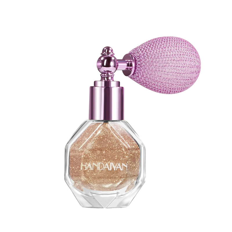 Vodoodolný trblietavý rozjasňovač v spreji 78 x 37 x 24 mm Sprej na telo, tvár i vlasy Jemný lesk kozmetický rozjasňujúci sprej