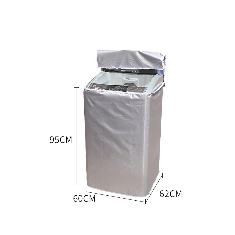 Vodotesný ochranný obal na vrchom plnenú práčku 95 × 60 × 62 cm Strieborný obal proti prachu, slnku a dažďu s odklápacím viečkom
