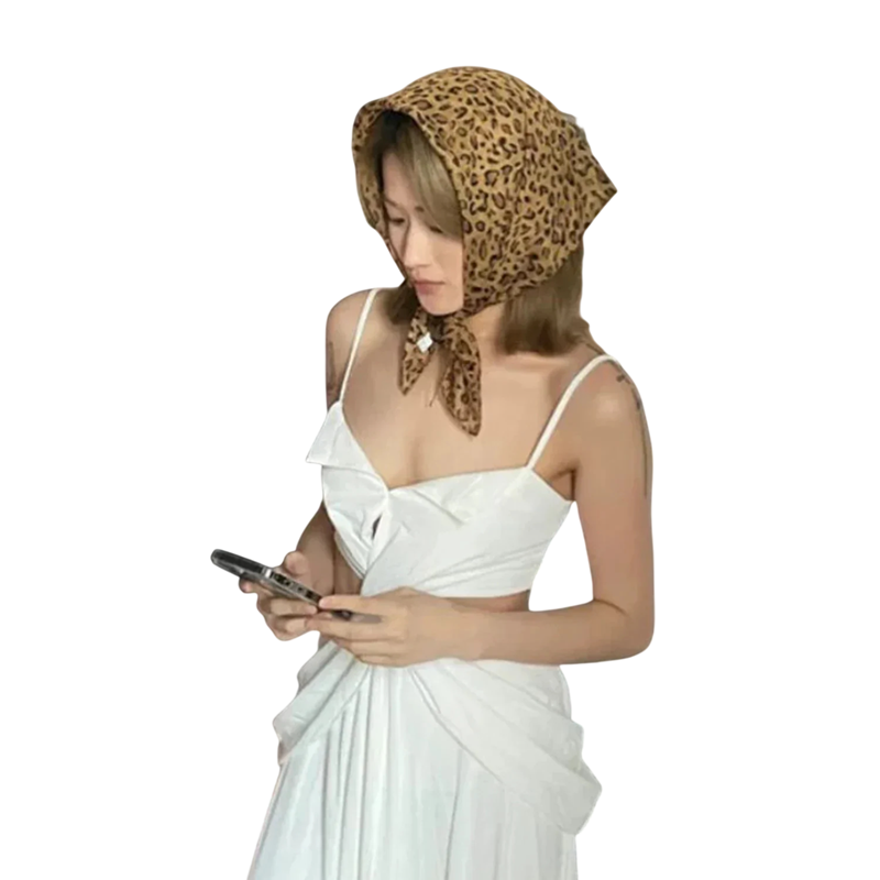 Y2K Retro Leopardí šátek na hlavu 62 cm Dámska módna pokrývka hlavy Teplý pohodlný párty doplnok pre ženy a dievčatá