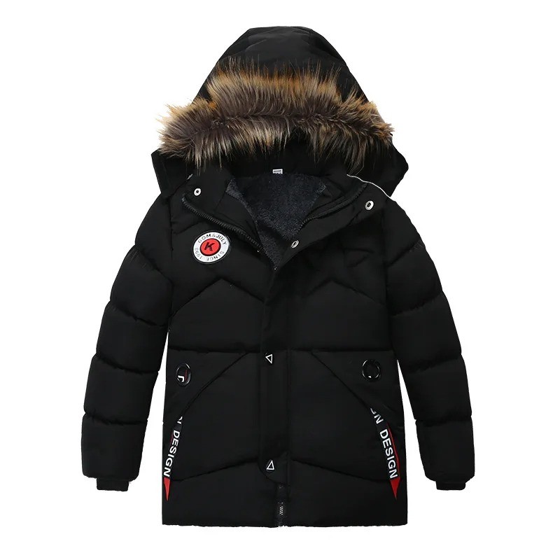 Zimná chlapecká bunda s kapucňou s kožuchom Teplá prešívaná bunda na zips a patentky Jesenné a zimné oblečenie Bavlna a polyester