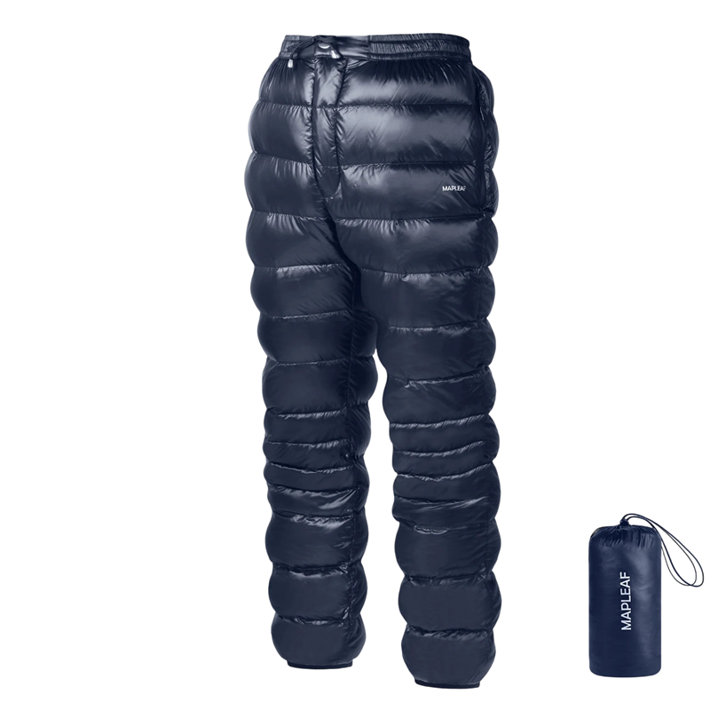 Teplé unisex zimné pérové nohavice z nylonu s vreckami na zips a pásom na šnúrku. Pohodlné, ľahké, skladné, ideálne pre zimné vonkajšie aktivity. Celý popis