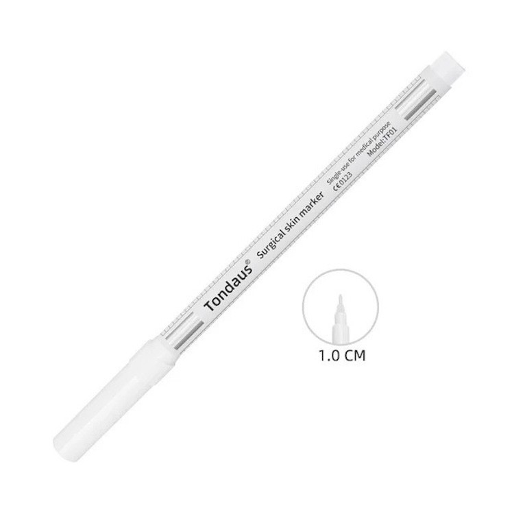 Značkovacie pero na pokožku 17 cm Biela alebo fialová Jemné pero s hrotom 1 mm pre tetovanie a kozmetické tvarovanie Značkovacie pero na pokožku je praktická pomôcka určená k presnému zakresleniu línií a tvarov pri kozmetických a dekoračných úpravách vzhľadu. Slúži na označovanie obočia, pier alebo pokožky pred tetovaním, prípadne pri ďalších kreatívnych technikách, kde je potrebné jasné a kontrolované vedenie línie. Vďaka jemnému hrotu umožňuje presnú prácu aj v detailoch. Pero má dĺžku približne 17 cm a je vybavené hrotom o hrúbke 1 mm, ktorý je vhodný na kreslenie tenkých a dobre čitateľných čiar. Ponúka sa v dvoch farebných variantoch – biela a fialová. Oba farby sú dobre viditeľné na pokožke a uľahčujú kontrolu tvaru počas práce. Konštrukcia pera umožňuje pohodlné držanie a plynulé vedenie ruky. Značkovacie pero je vhodné pre profesionálne kozmetické použitie aj pre domácu kreatívnu tvorbu. Môže sa využiť pri tvarovaní obočia, návrhu línií pre tetovanie alebo pri dekoratívnom kreslení na pokožku. Farba je určená na dočasné označovanie a možno ju po použití odstrániť bežnými čistiacimi prostriedkami určenými pre pokožku.
